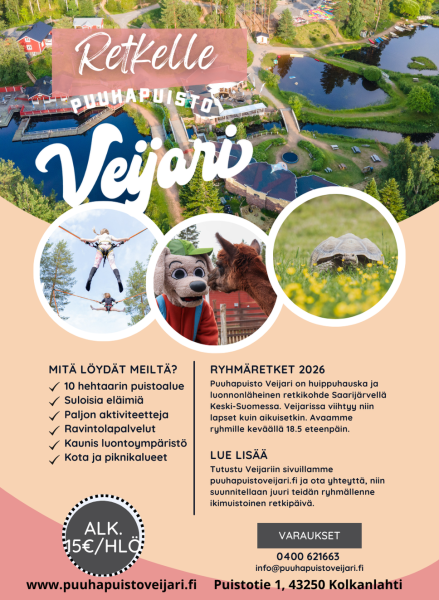 Nyt on hyvä hetki alkaa jo hieman miettiä ensi kevään ja kesän retkikohdetta:) Veijari avaa porttinsa kevätretkeläisille 18.5 eteenpäin ennakkovarauksella. Ota yhteyttä info@puuhapuistoveijari.fi tai 0400621663 ja suunnitellaan juuri sinun ryhmällesi ikimuistoinen retkipäivä!